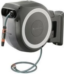 Met de wandslangenbox RollUp XL is het bewateren van een grote tuin aangenaam en eenvoudig. U bevestigt de compacte slangopslag permanent op de muur van uw huis en sluit deze met een aansluitslang aan op de kraan. Dankzij de 35 meter lange slang en de 180 graden draaibare slangenbox is het heerlijk om uw planten te bewateren en is dit geen corvee meer. De slangenhouder volgt uw bewegingsrichting en voorkomt dat de slang gaat knikken of in de war raakt. Nadat u de slang tot de gewenste lengte voor het bewateren hebt uitgetrokken, grijpen de zeer korte vergrendelingspunten zich automatisch vast en blokkeren ze de slang zodra u stopt. Door lichtjes aan het uiteinde van de slang te trekken, wordt het vergrendelmechanisme ontgrendeld en wikkelt een geïntegreerde stalen veer de verlengde tuinslang volledig automatisch, betrouwbaar en gelijkmatig voor u op. Dankzij de innovatieve RollControl-technologie gebeurt het oprollen veilig en gecontroleerd. De geïntegreerde slanggeleider zorgt ervoor dat de slang netjes en gelijkmatig wordt opgerold, zonder dat deze in de knoop raakt. De kraan- en slangaansluitingen van de slangenbox maken deel uit van het Original GARDENA System, zodat u op elk gewenst moment andere GARDENA opzetstukken kunt aansluiten. U hebt altijd uw GARDENA mondstukken bij de hand: ze kunnen onder de muurbeugel worden bevestigd en daar worden opgeborgen om ruimte te besparen. Het hoogwaardige materiaal is UV- en vorstbestendig en bestand tegen weersinvloeden. Daarom kan het systeem het hele jaar door worden gebruikt. Bovendien is de slangopslag beveiligd met een antidiefstalvoorziening. Alle benodigde aansluit- en montageonderdelen worden bijgeleverd in de wandslangenbox RollUp: een muurbeugel, een aansluitslang, alle benodigde Original GARDENA System onderdelen en een mondstuk met twee verschillende sproeiopties. GARDENA geeft vijf jaar garantie op de hoogwaardige slangopslag. Bewatering die altijd gebruiksklaar is , dankzij de GARDENA wandslangenbox RollUp XL.
