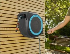 - Dankzij de wandslangenbox heeft u de tuinslang en accessoires altijd bij de hand. Sproeiers, tuinspuiten en wasborstels kunnen eenvoudig aan de muurbeugel worden opgehangen en opgeborgen.